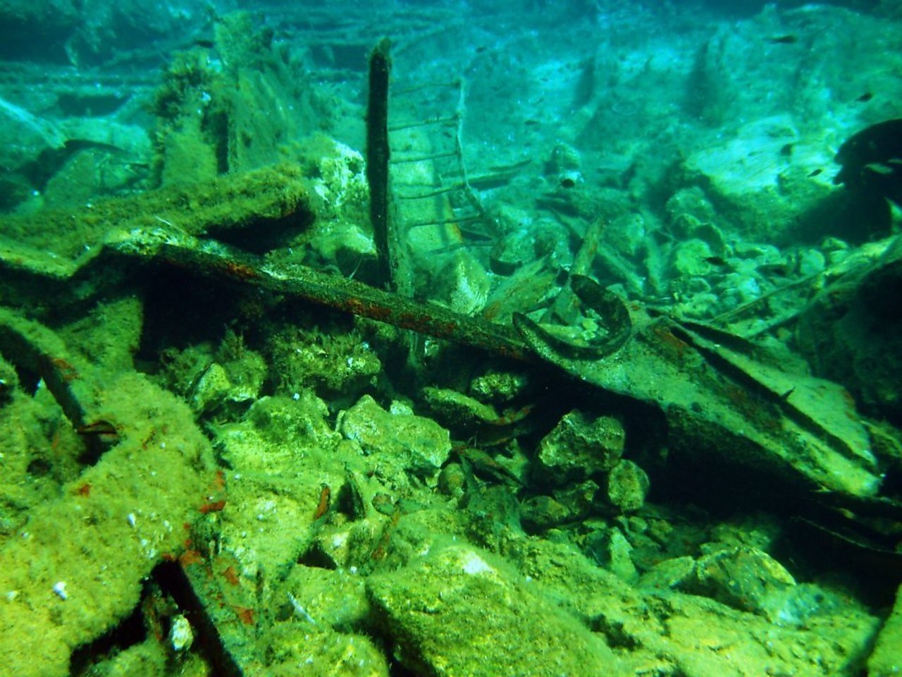 Interesting Facts: This Lebanese freighter ran aground in shallow water in 1972 and was initially used as target practice by the army. It was later declared a hazard to other ships and blown up in 1974. It now rests in a crater created by the explosion. It is in four main sections with the bridge still fairly intact.